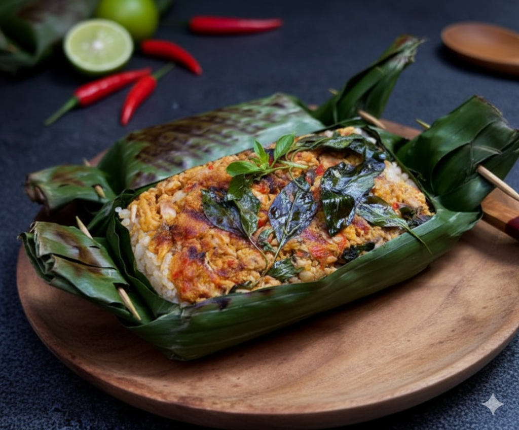 - Letakkan secukupnya ke atas daun pisang lalu dibungkus.