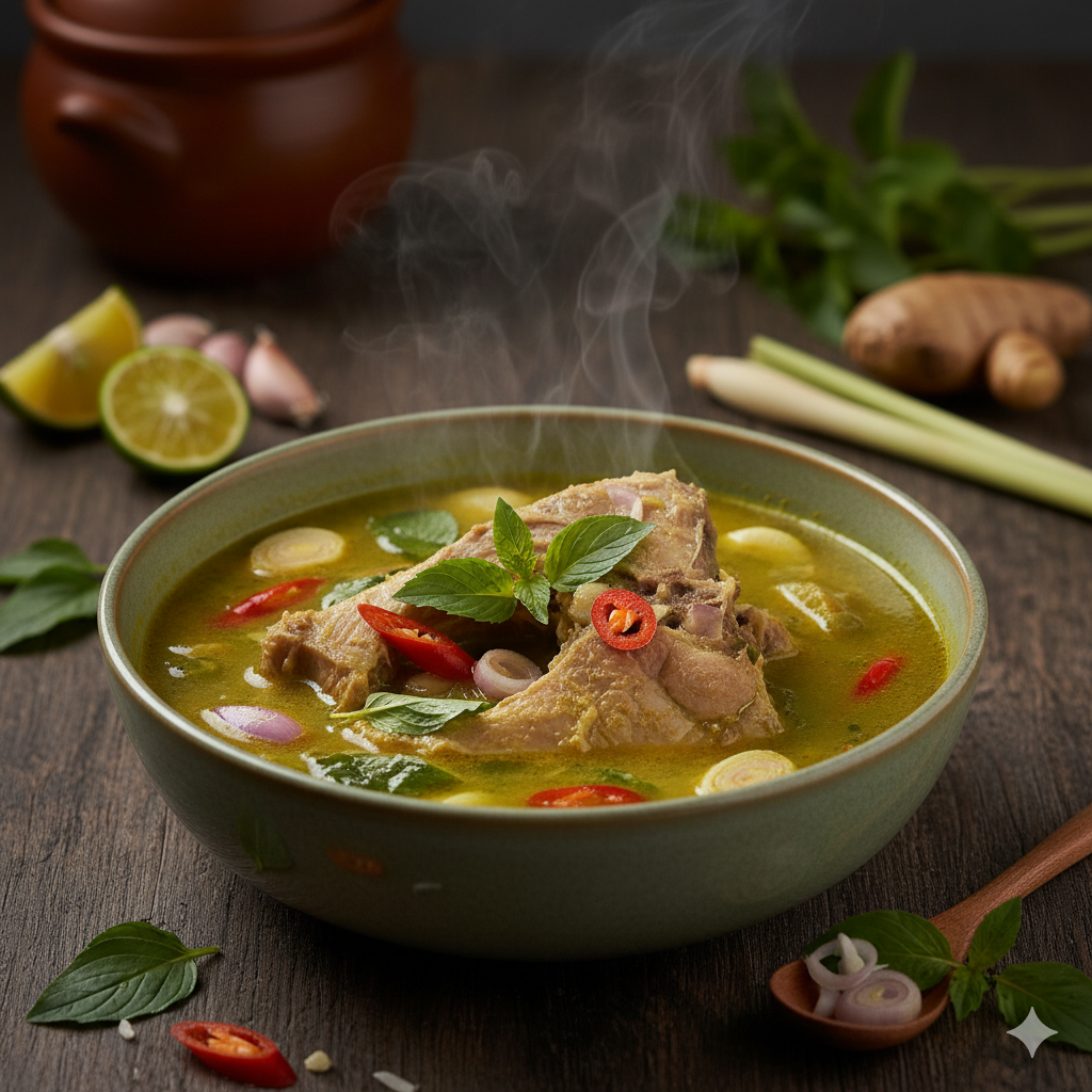 - Setelah itu, tambahkan serai, daun jeruk, dan daun pandan. Aduk merata.