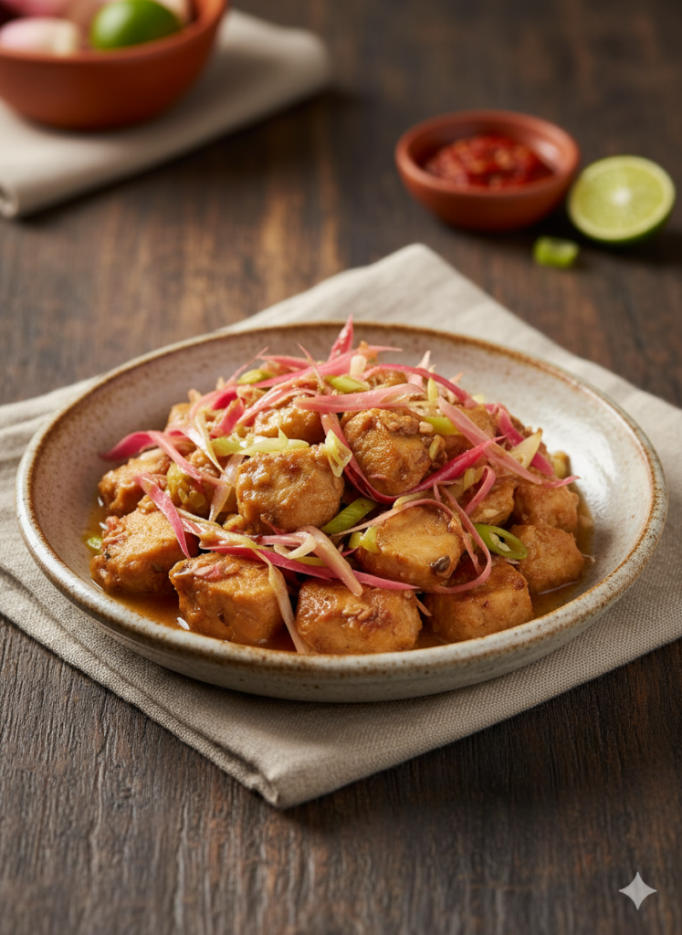 - Cuci bersih babat dan ginjal, potong-potong dadu, rebus dengan 2 lembar daun salam sampai empuk. Tiriskan, bilas.