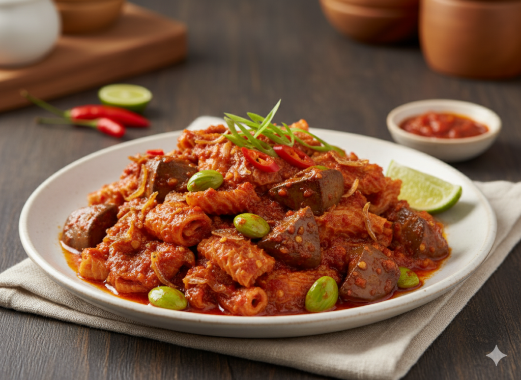 - Setelah itu masukkan potongan pete, babat, dan ginjal, aduk rata. Beri air, bumbui dengan garam, gula, kecap manis dan kaldu jamur, koreksi rasa. Masak sampai kuah menyusut dan bumbu meresap.